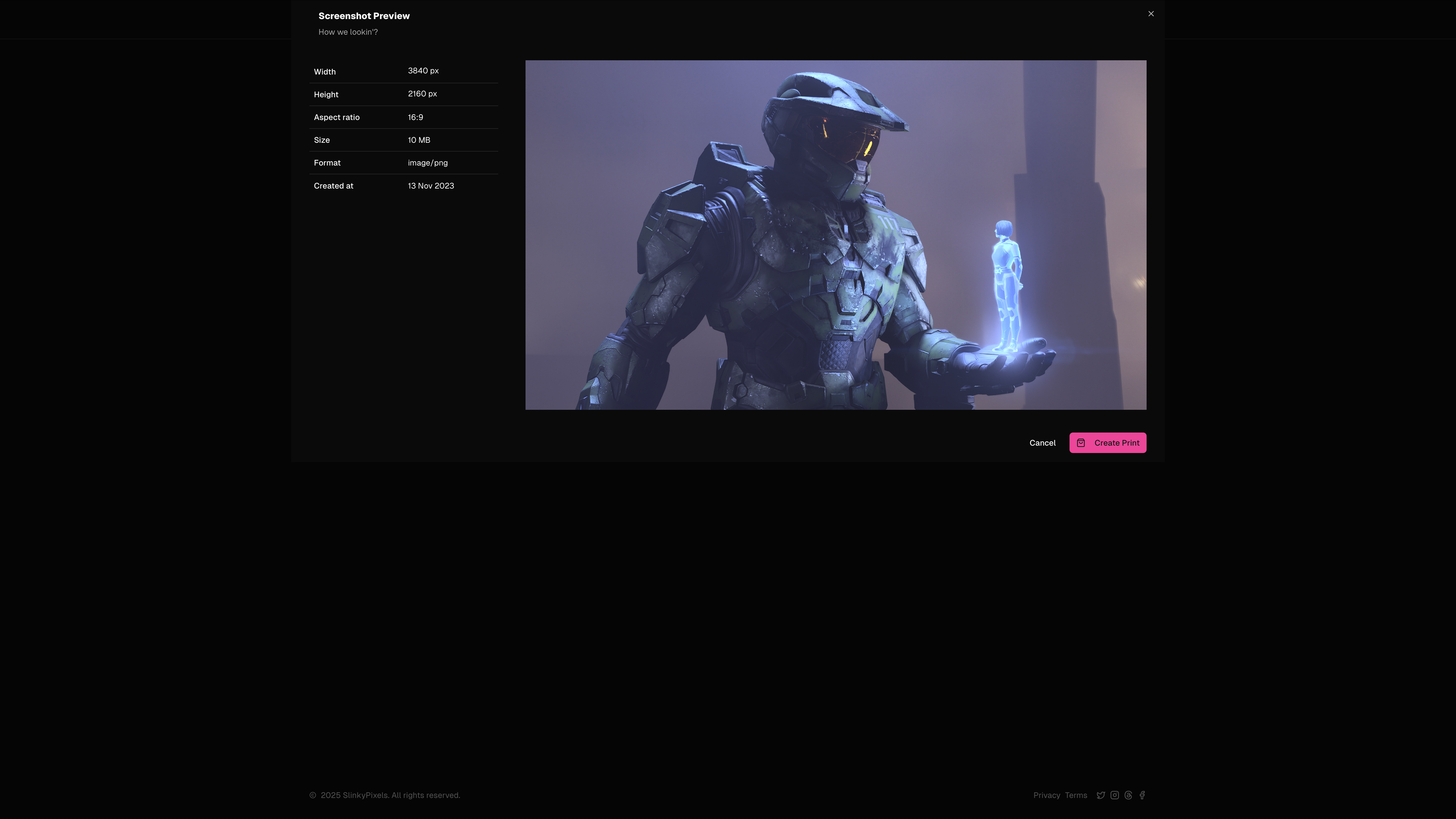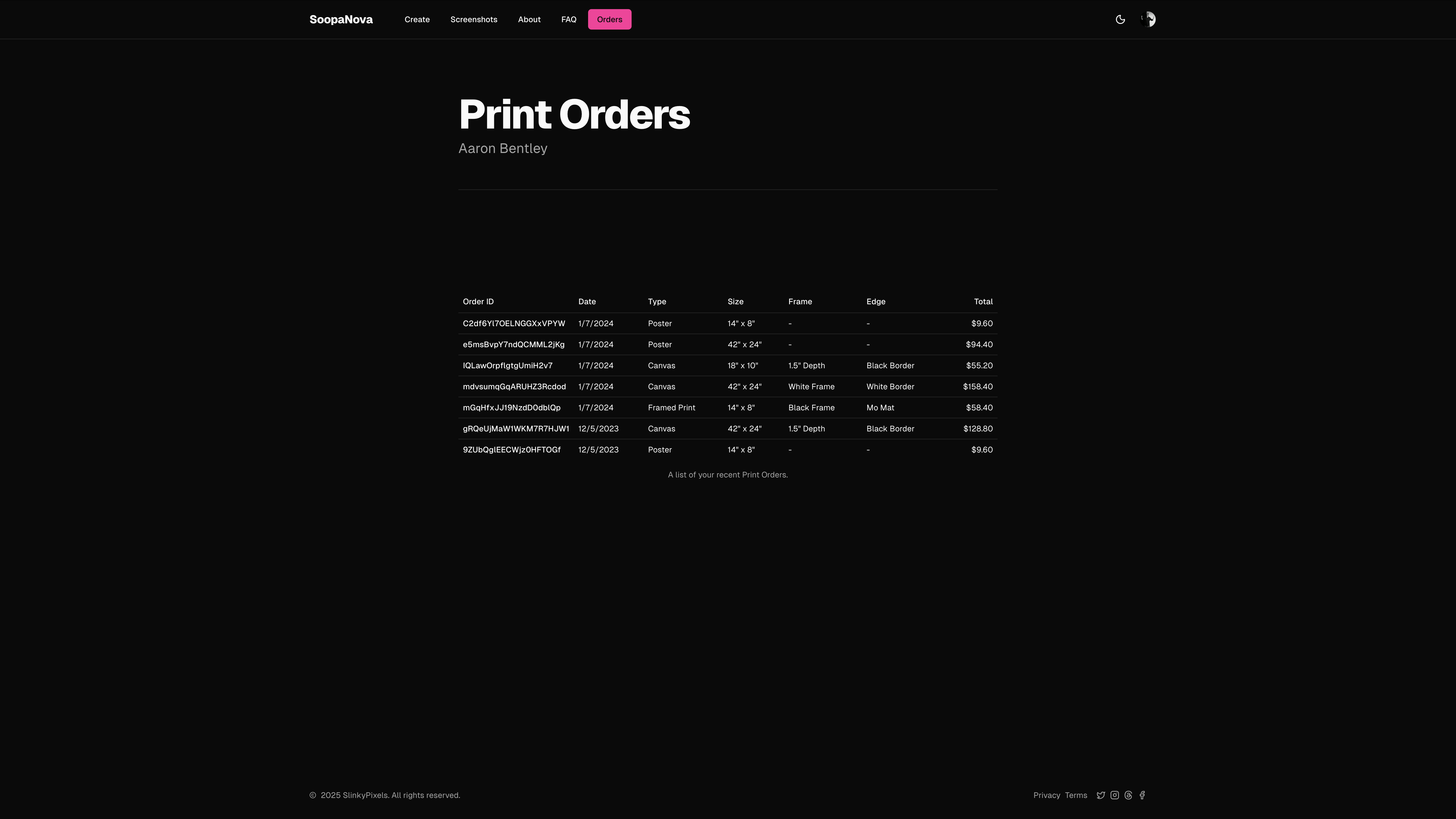 A printing service focused on gaming screenshots, users can upload their screenshots and order posters, canvas or framed prints via the Canvaspop API.